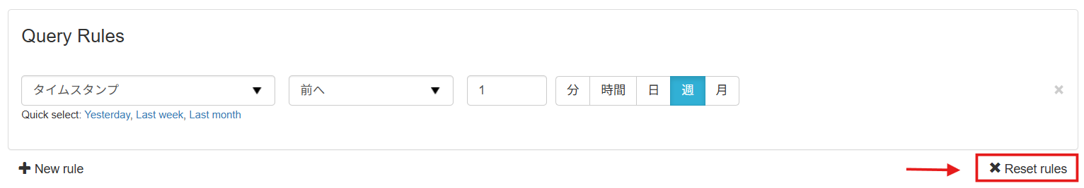 検索後表示されます「Reset rules」をクリックしますと、検索項目をすべてデフォルトの状態に戻します。