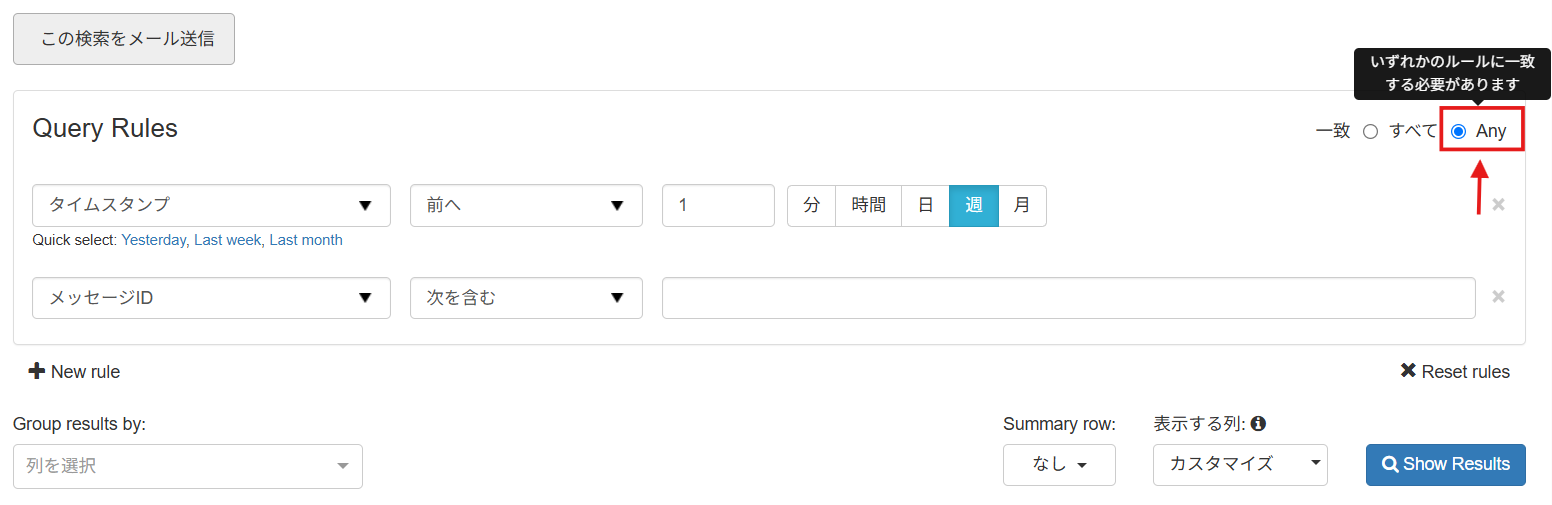 「Any」にチェックを入れますと、上記で複数のQuery Ruleを指定した場合、全てのルールに一致していなくても部分的に一致しているものを表示できます。
