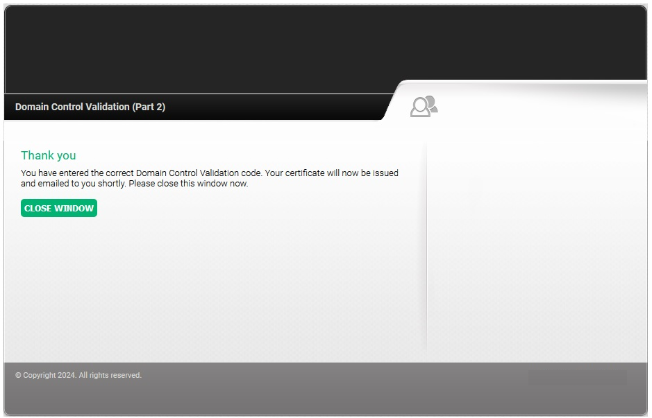 1-2. 緑色のボタン「Complete Domain Control Validation」をクリックいただき、