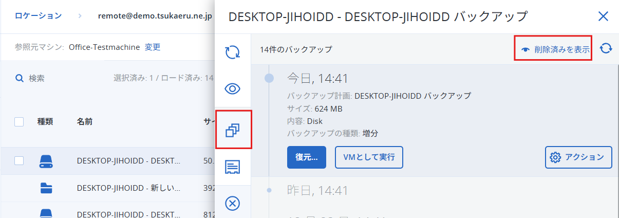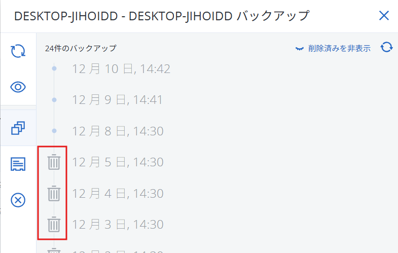 本機能は、バックアップデータを誤って削除してしまった場合や、意図せずデータを削除されてしまった場合に、