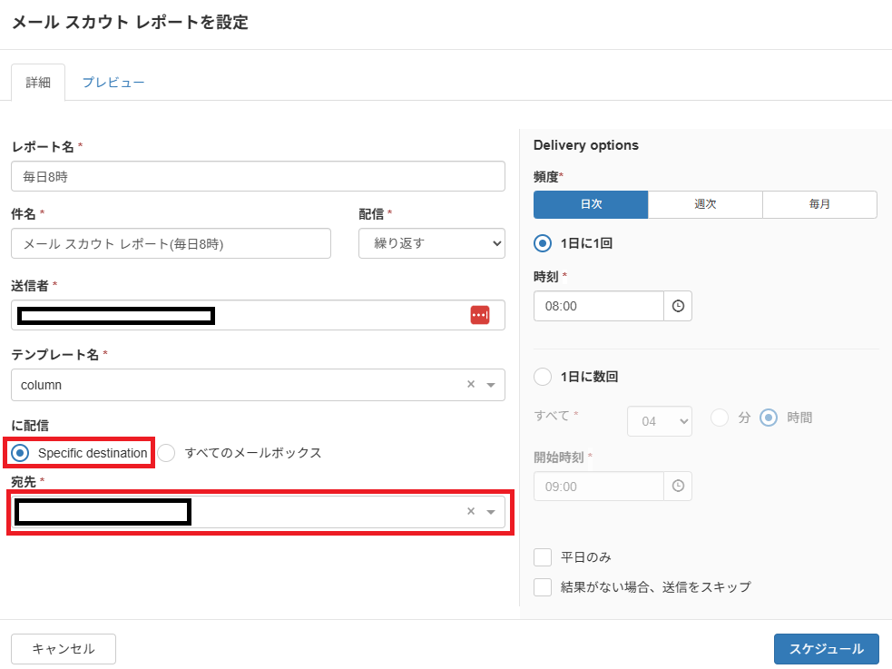 ・宛先:レポートを受信したいメールアドレスを入力します。