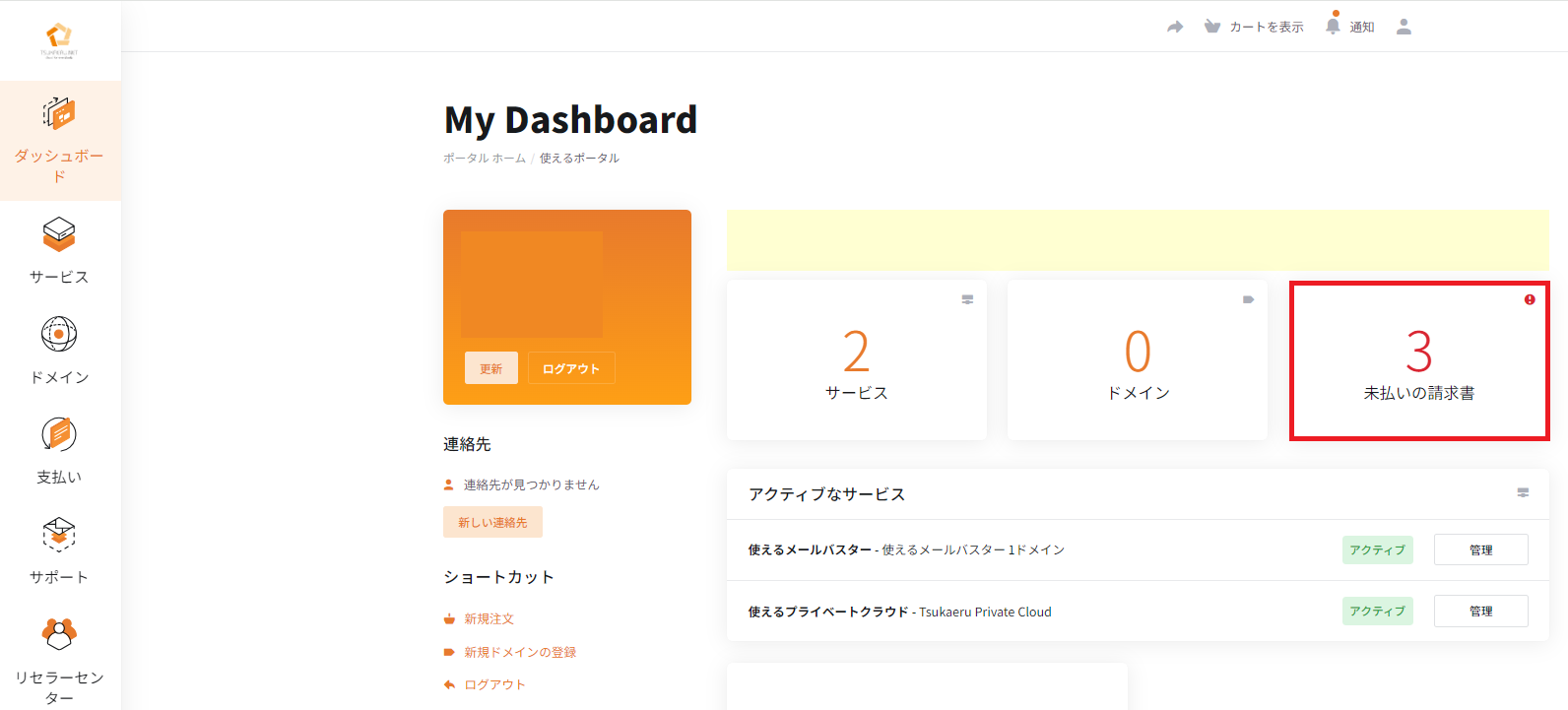 1. 未払いの請求書 ・・・・・ 未払い請求書の件数と合計金額を表示