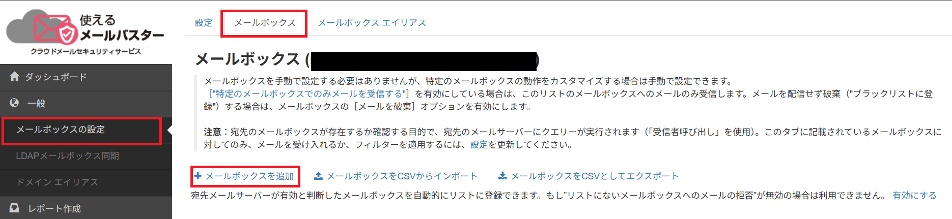 2. ページ左側メニュー『メールボックスの設定』>『メールボックス』タブに移動します。