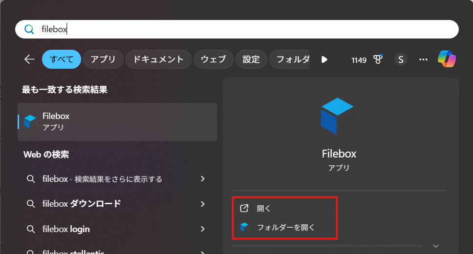 3.デスクトップからPCクライアントのアイコンをダブルクリックするか、WindowsメニューからFileboxアプリケーションを開きます。